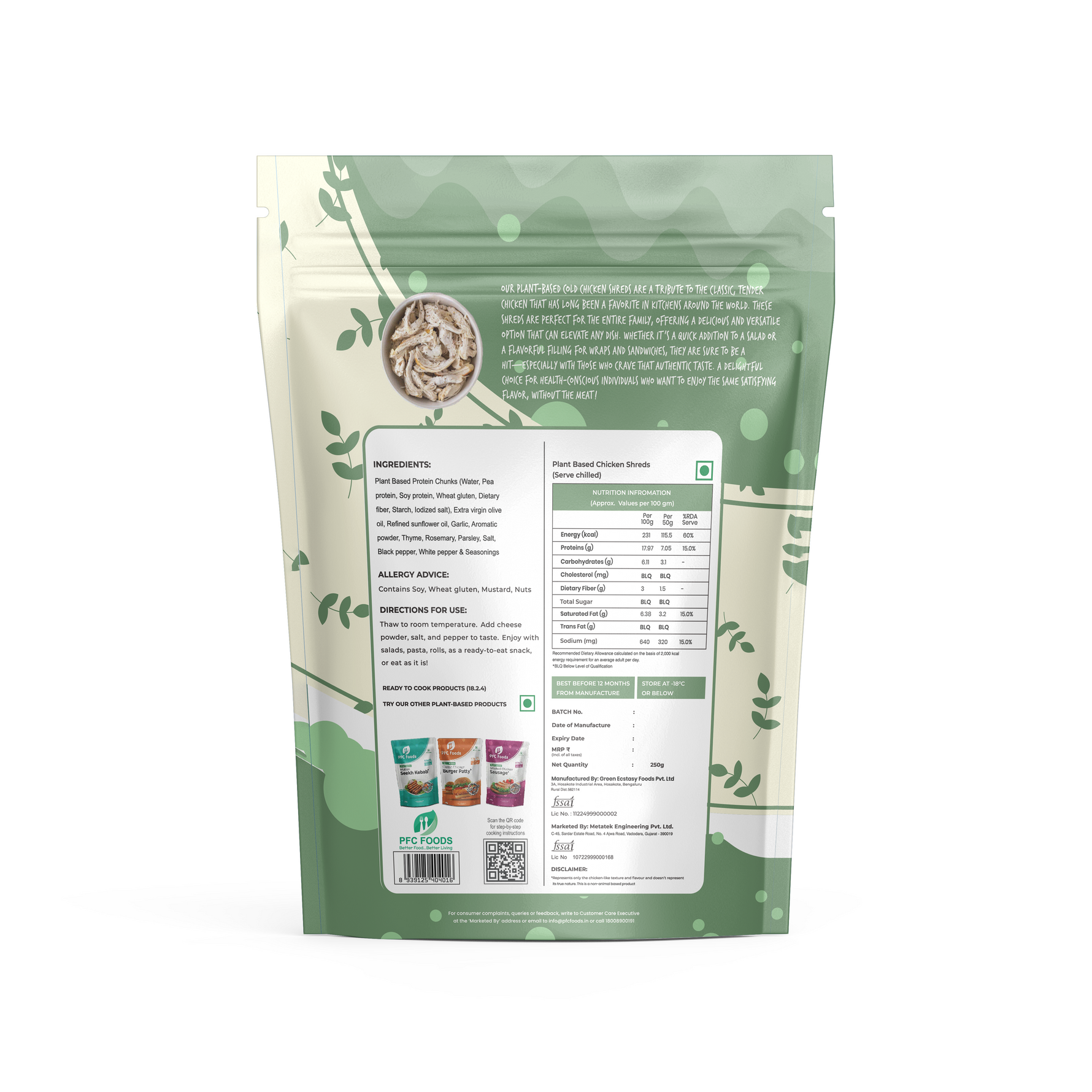 Our Plant-Based Cold Chicken Shreds are a tribute to the classic, tender chicken that has long been a favorite in kitchens around the world. These shreds are perfect for the entire family, offering a delicious and versatile option that can elevate any dish. Whether it’s a quick addition to a salad or a flavorful filling for wraps and sandwiches, they are sure to be a hit—especially with those who crave that authentic taste. A delightful choice for health-conscious individuals who want to enjoy the same satisfying flavor, without the meat!